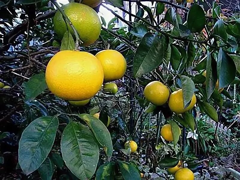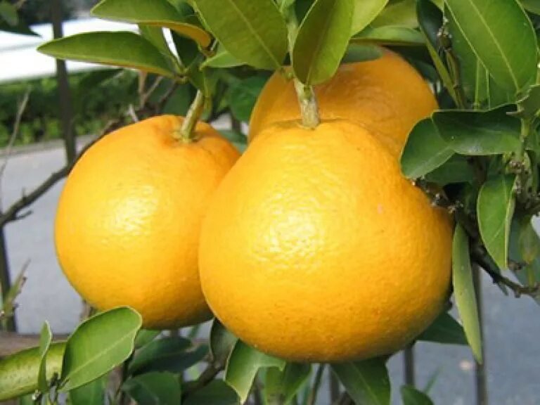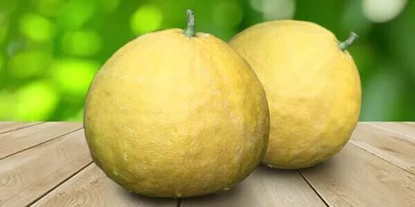 Плоды крупные, шаровидные, структура аналогична Бергамоту. Кожура фрукта гладкая, лимонно — желтого цвета. В ней содержится большое количество эфирных масел. Внутренняя, белая часть кожуры довольно толстая. Мякоть фрукта желтая с оттенками зеленого, мягкая, очень кислая, сочная и ароматная. Мякоть делится на сегменты с большим количеством мелких семян.