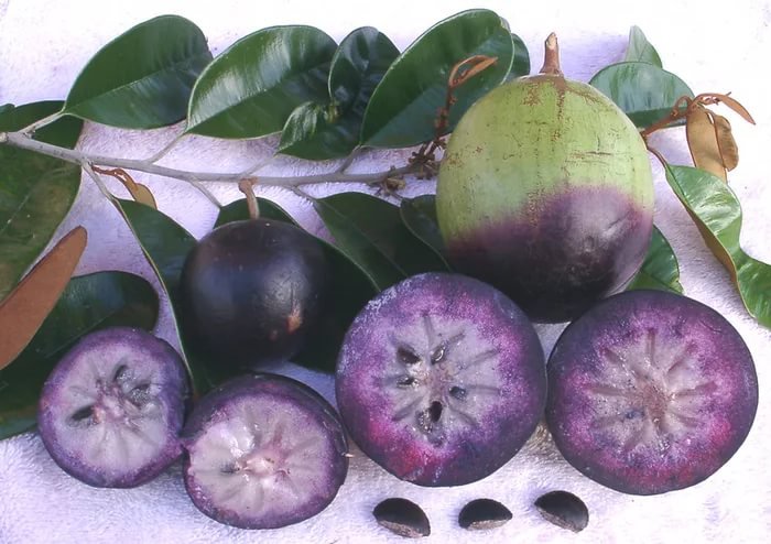 Звездное яблоко обладает сладким вкусом, кислинки в нем никогда нет. Фрукт напоминает по вкусу запеченные яблоки, яблочный пирог, а иногда сладкую манную кашу. Если есть его с закрытыми глазами, то по вкусу сложно отличить от слойки с яблоками. В недозрелых плодах содержится млечный сок, называемый латексом.